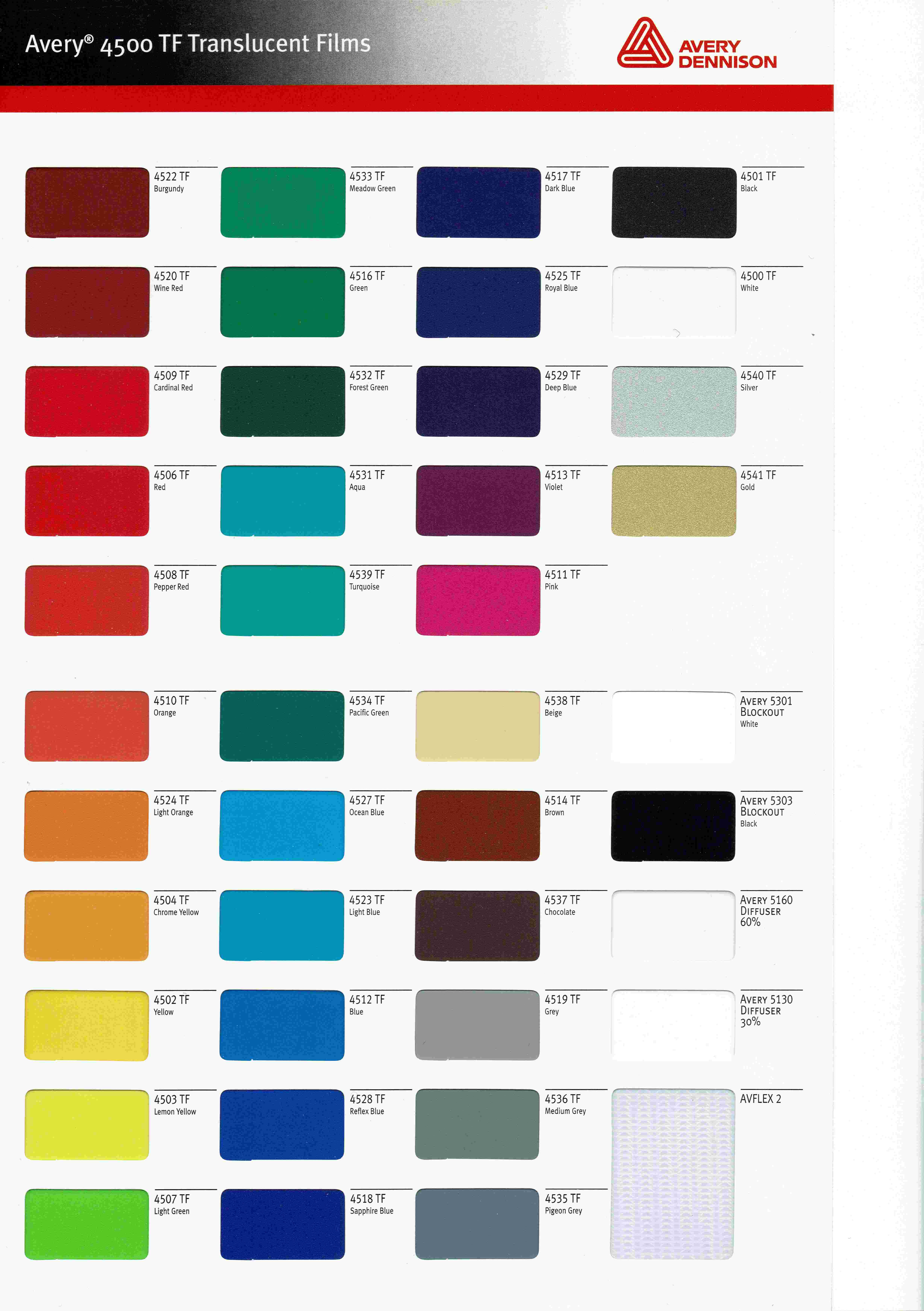 艾利4500广告灯箱贴膜色卡