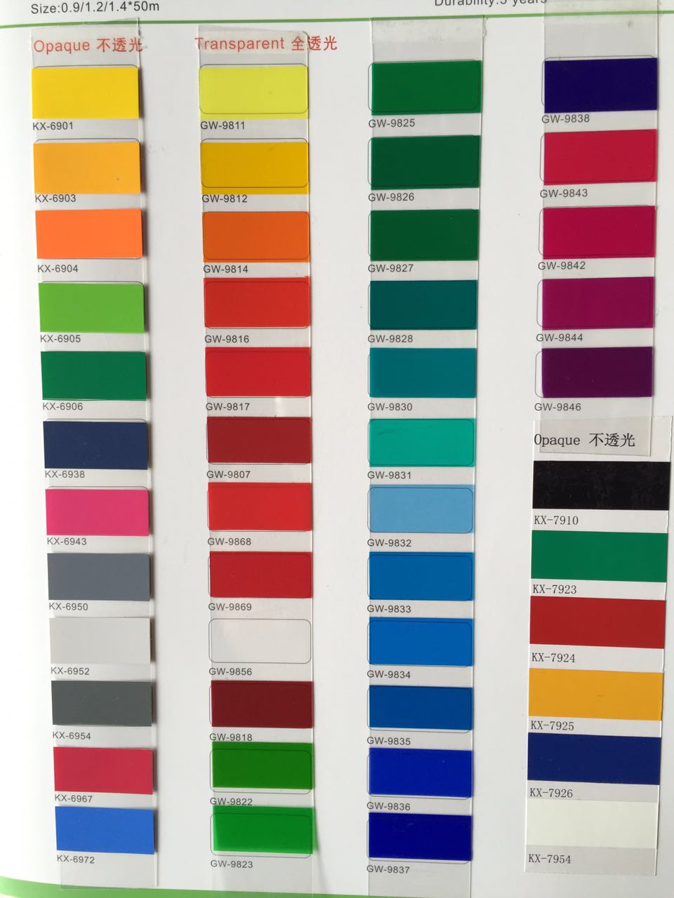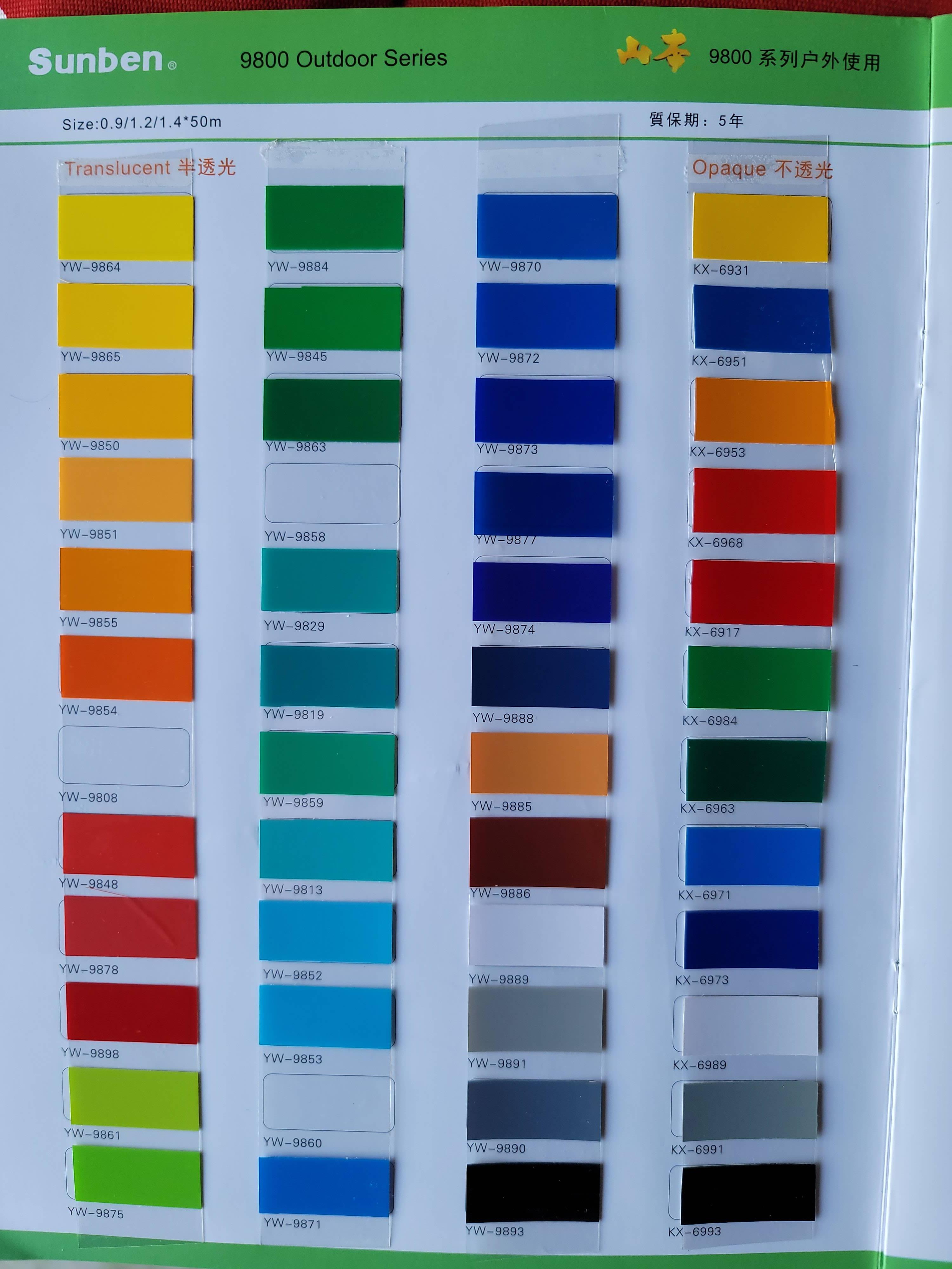 山本广告灯箱贴膜色卡