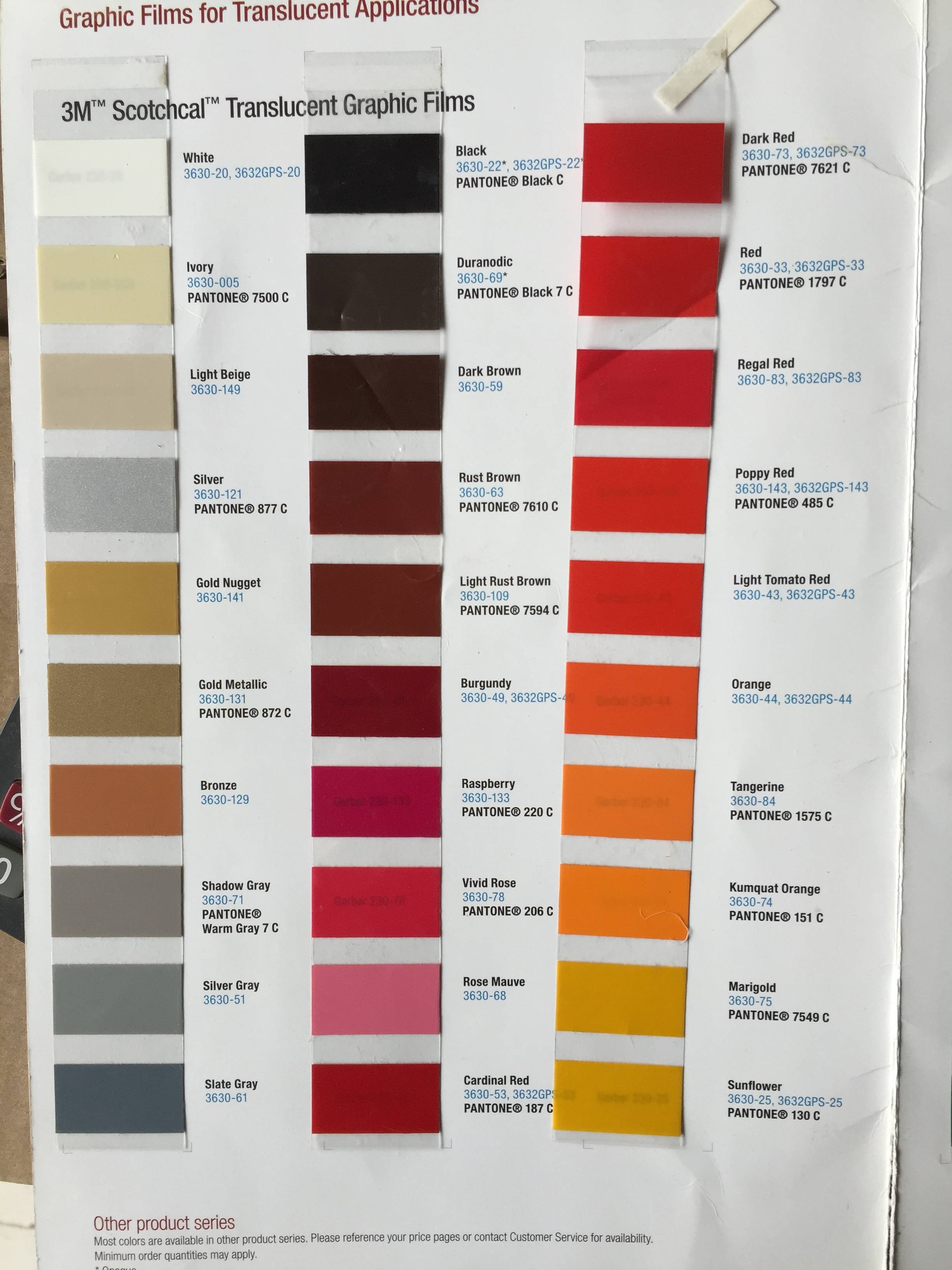 3m3630广告灯箱贴膜色卡